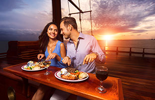 This is one of a kind romance tour in Cancun offering a special evening surrounded by breathtaking views, live saxophone music, fine wine, and food. "The Lobster Dinner" the most romantic night tour in Cancun, where you will enjoy the wonderful sunsets at the Nichupté Lagoon as well as a delicious lobster and/or fillet dinner, under the light of stars.